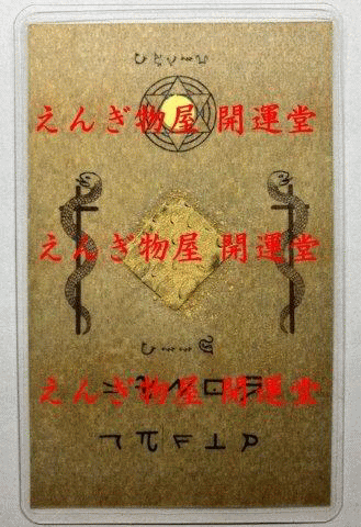 この護符はピラミッドパワー、魔方陣、特殊符の聖円に純金箔を貼り