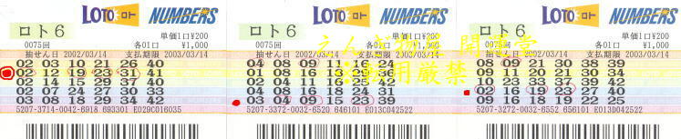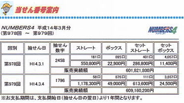 | (2002.10.08着) これで大きい当たりは2回目です!! 福岡県 JJさん こんにちは。久々に大きいのが当ったのでご報告いたします。これでやっと体験談に掲載してもらえます 。これで大きい当たりは2回目です。 前回が、1月に今回と同じナンバーズ4セットストレートだったので 今回の当選で今年の当選金が130万円を超えました。 感謝します。しかしロト6は、なかなか当らないんですよね。 今回新たに、金運ピラミッドを注文しますので宜しくお願いします。 |