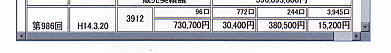 ![]() 惜しいのですがただのハズレです 3996だったら460万円ぐらい! ※本体験談及び画像はくじをスキャンした画像を お送りいただいて掲載しています |