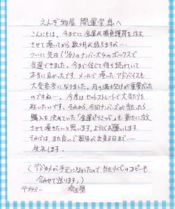 ![]() ※本体験談及び画像は当たりくじのコピーとお手紙を お送りいただいて掲載しています |