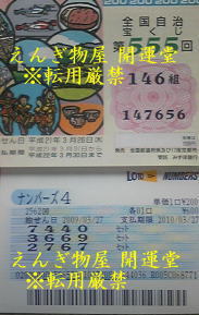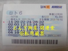 (2009.04.03着)★護符が来た翌日にロト6で一発狙いで各2口買いしたら見事当選です。