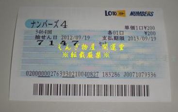 | (2012.09.19着) 今回も、いつもと変わらず買い続けているだけ今回は、車のナンバーでした 福岡県 匿名希望 さん 女性(59才) 黒川様 来ました!! お札をいただいて、1か月過ぎましたが やっと、ナンバーズ4セットボックス獲得です。 写真添付いたしますのでご利用ください。 新月の日にしっかり念を込めました。 これを機に、当て続けます!! 前回は、2003年にナンバーズ4が当たった報告を掲載していただきましたが 以降当たりもなく今回久しぶりに当選いたしました。 ありがとうございました。 福岡県 ×× (付記) 黒川様 お世話になっております。 心のこもったメールありがとうございます。 どうぞ、お使いくださいませ。 後付け加えますと、開運堂様のお札を持つと欲が消えるという事です。 今回も、いつもと変わらず買い続けているだけ今回は、車のナンバーでした 良いことが重なったという事だと思います。 ありがとうございました。 福岡県 ×× |
