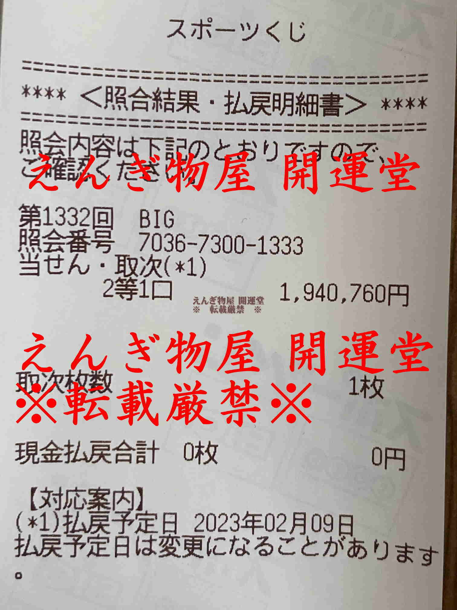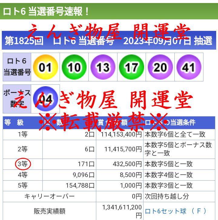 | (2023.08.30着) 匿名希望(住所地、性別、年齢掲載不可) ※注;お客様のご要望により「第1818回ロト6一等3億3801万円当選!」以外の 内容は一切掲載致しません。 ご了承ください。 |